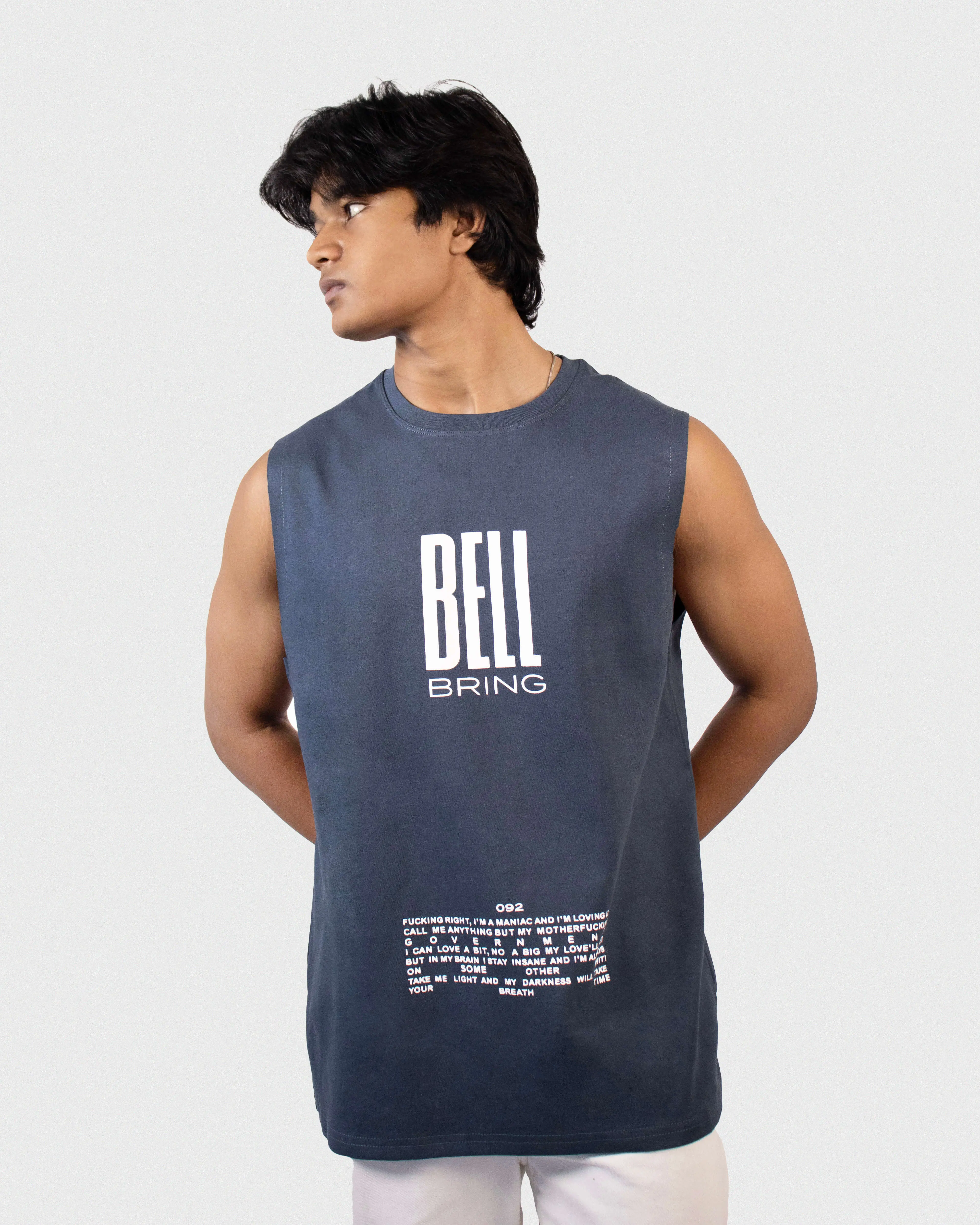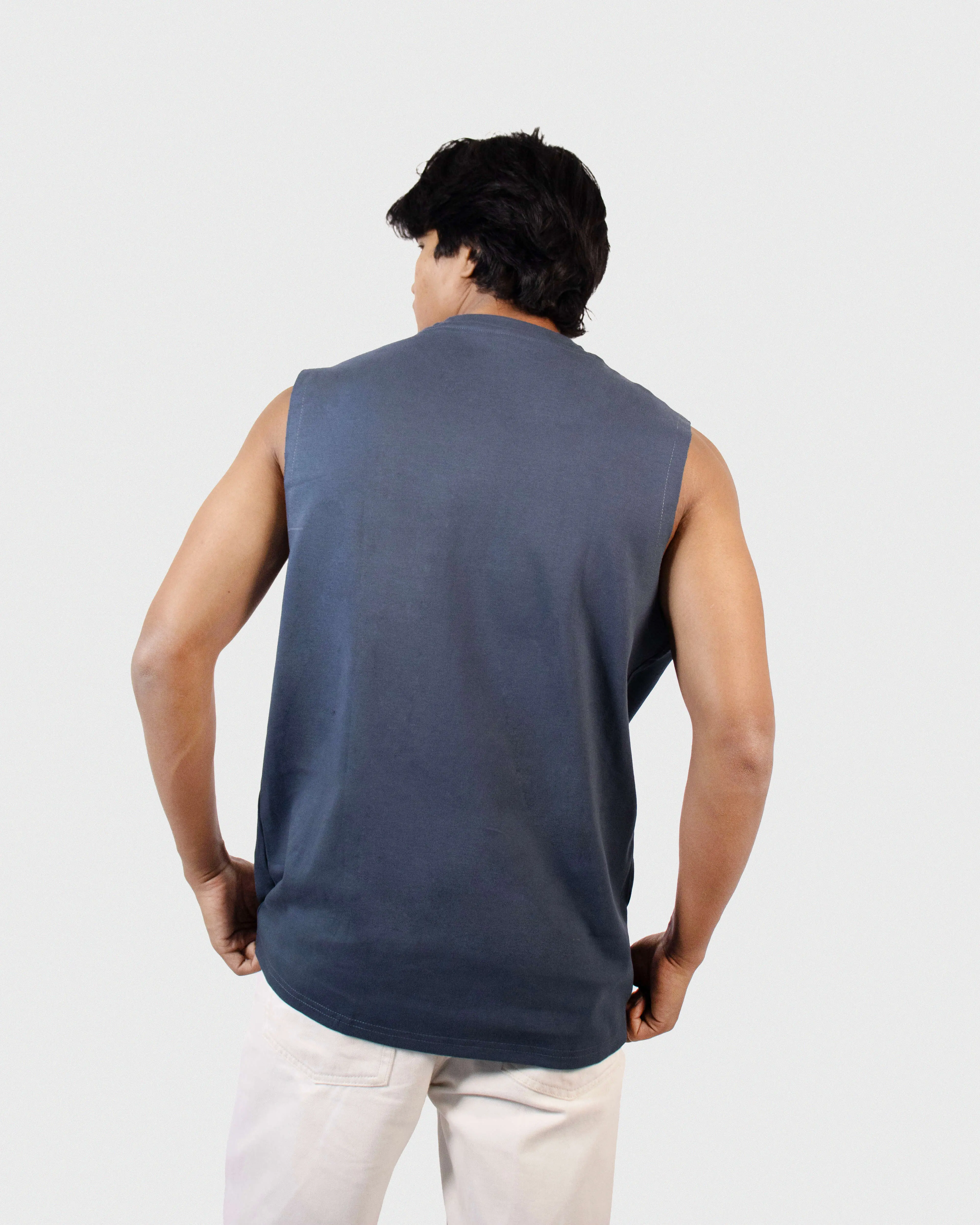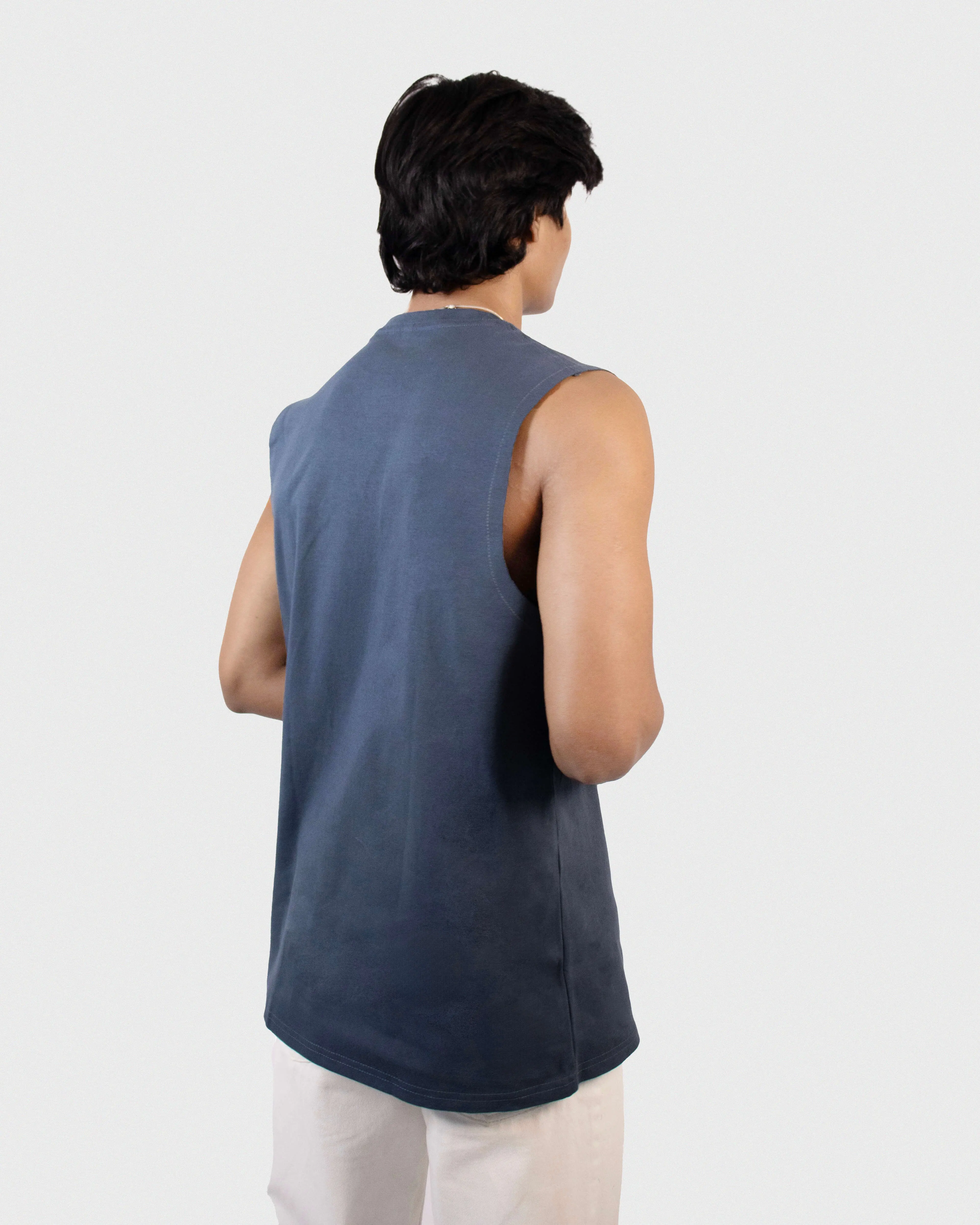 Oversized Tank in printed cotton with a round, rib-trimmed neckline, dropped shoulders and short sleeveless.