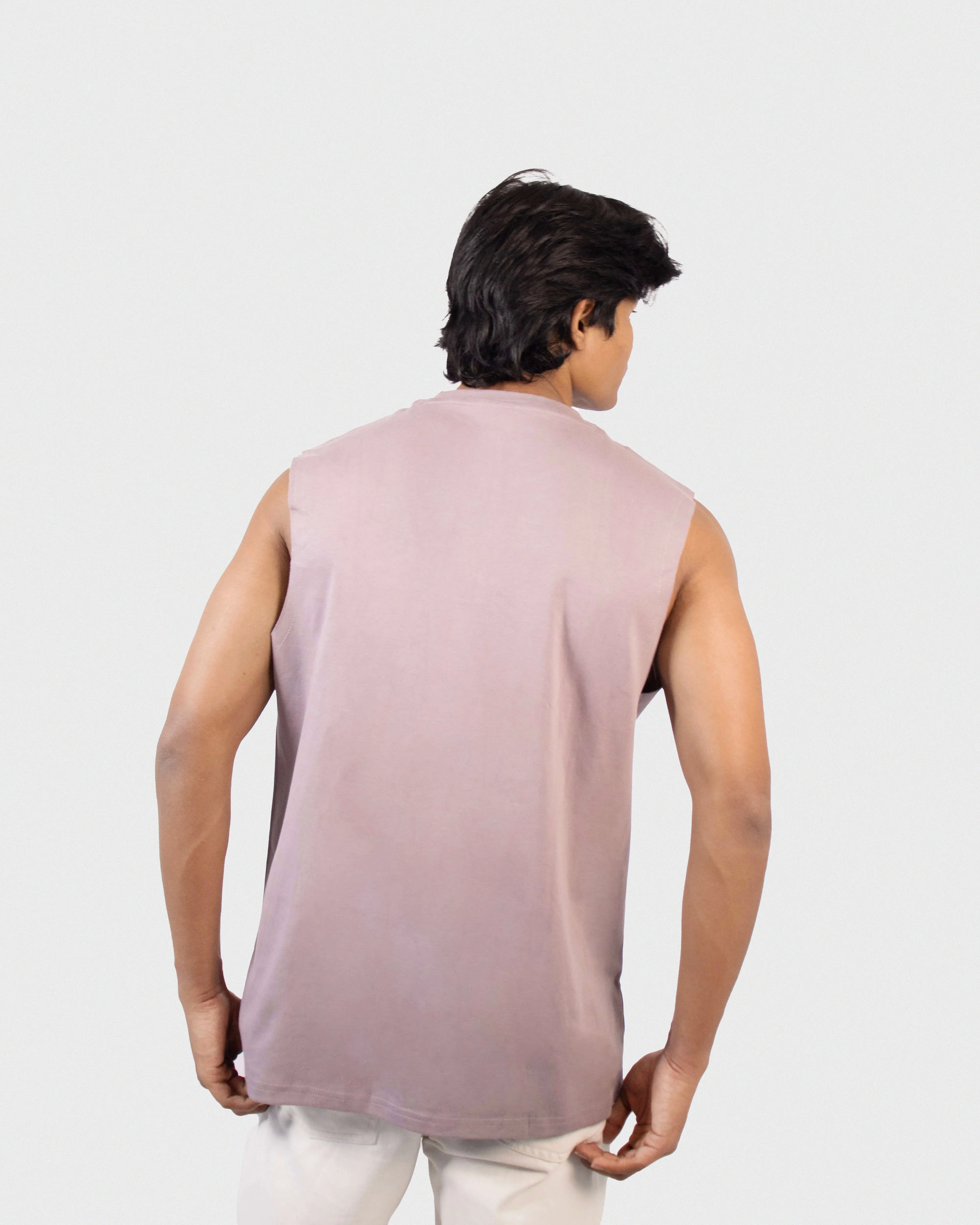 Oversized Tank in printed cotton with a round, rib-trimmed neckline, dropped shoulders and short sleeveless.
