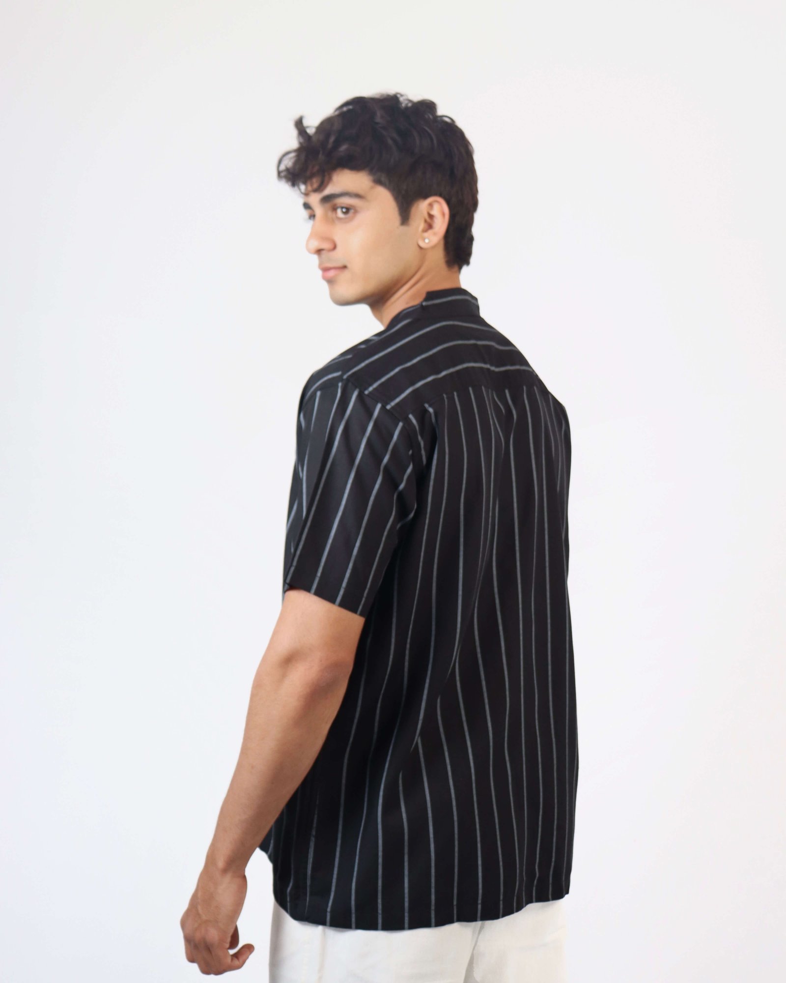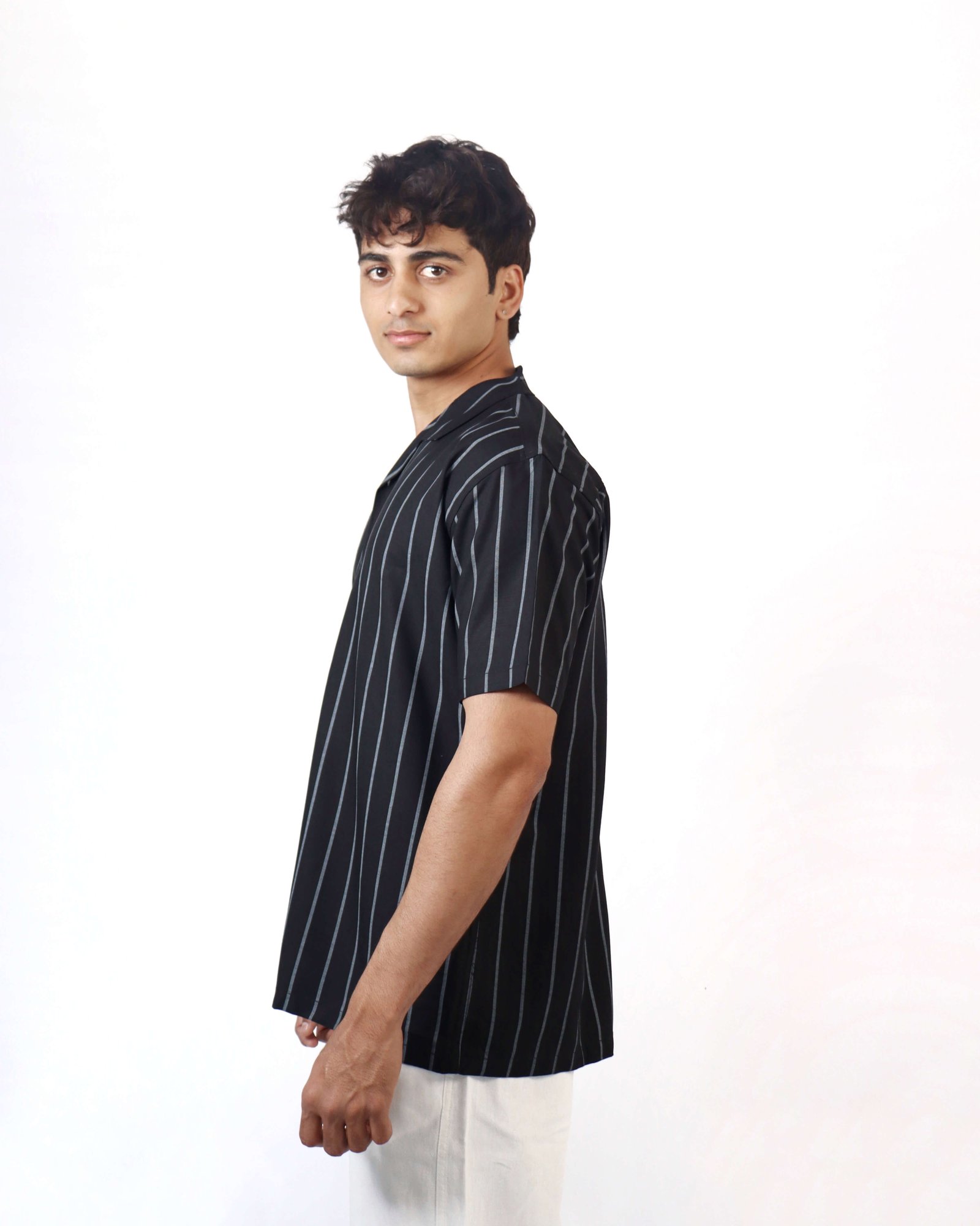 Oversized Shirt in cotton, ribdropped shoulders and short sleeves.