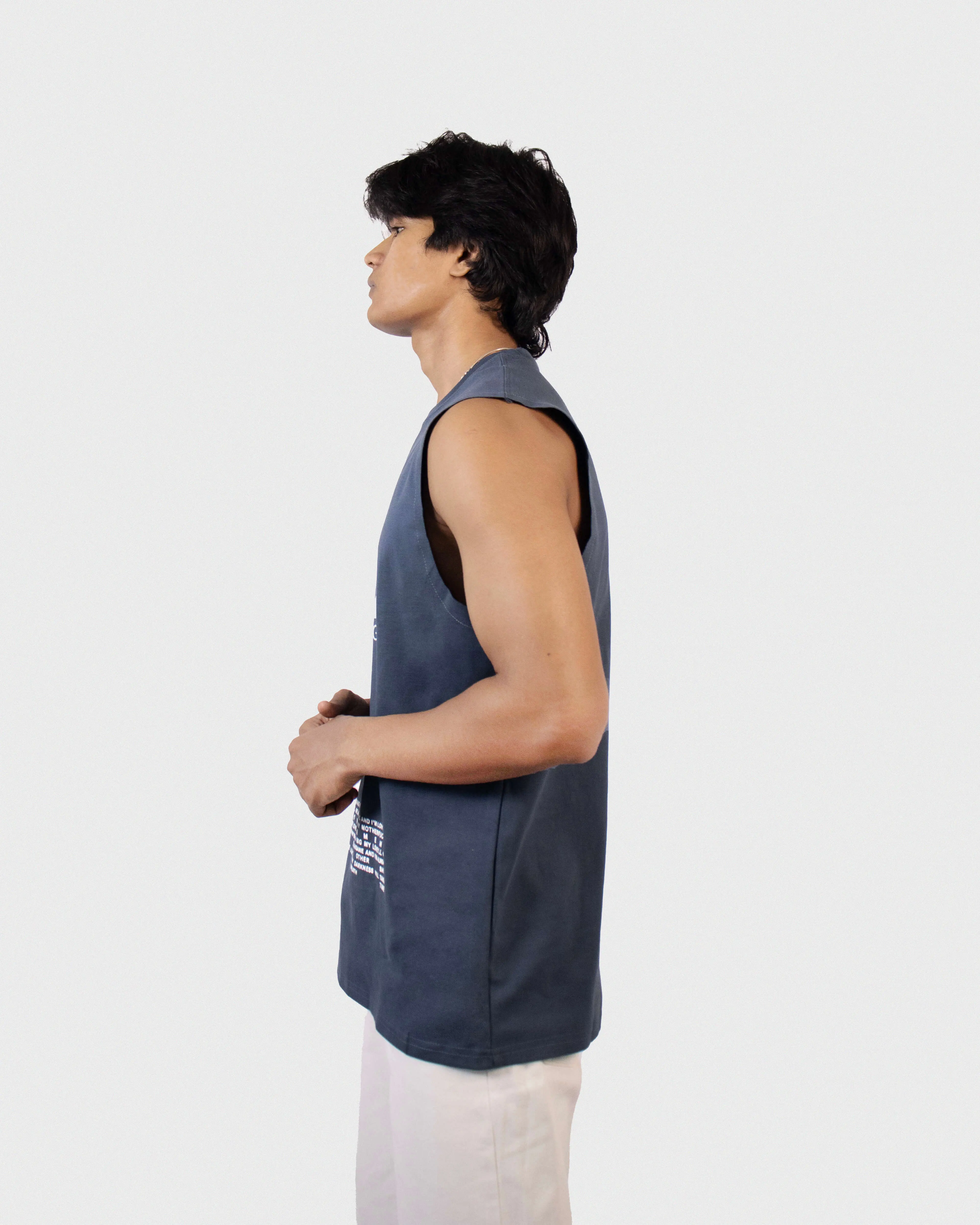 Oversized Tank in printed cotton with a round, rib-trimmed neckline, dropped shoulders and short sleeveless.
