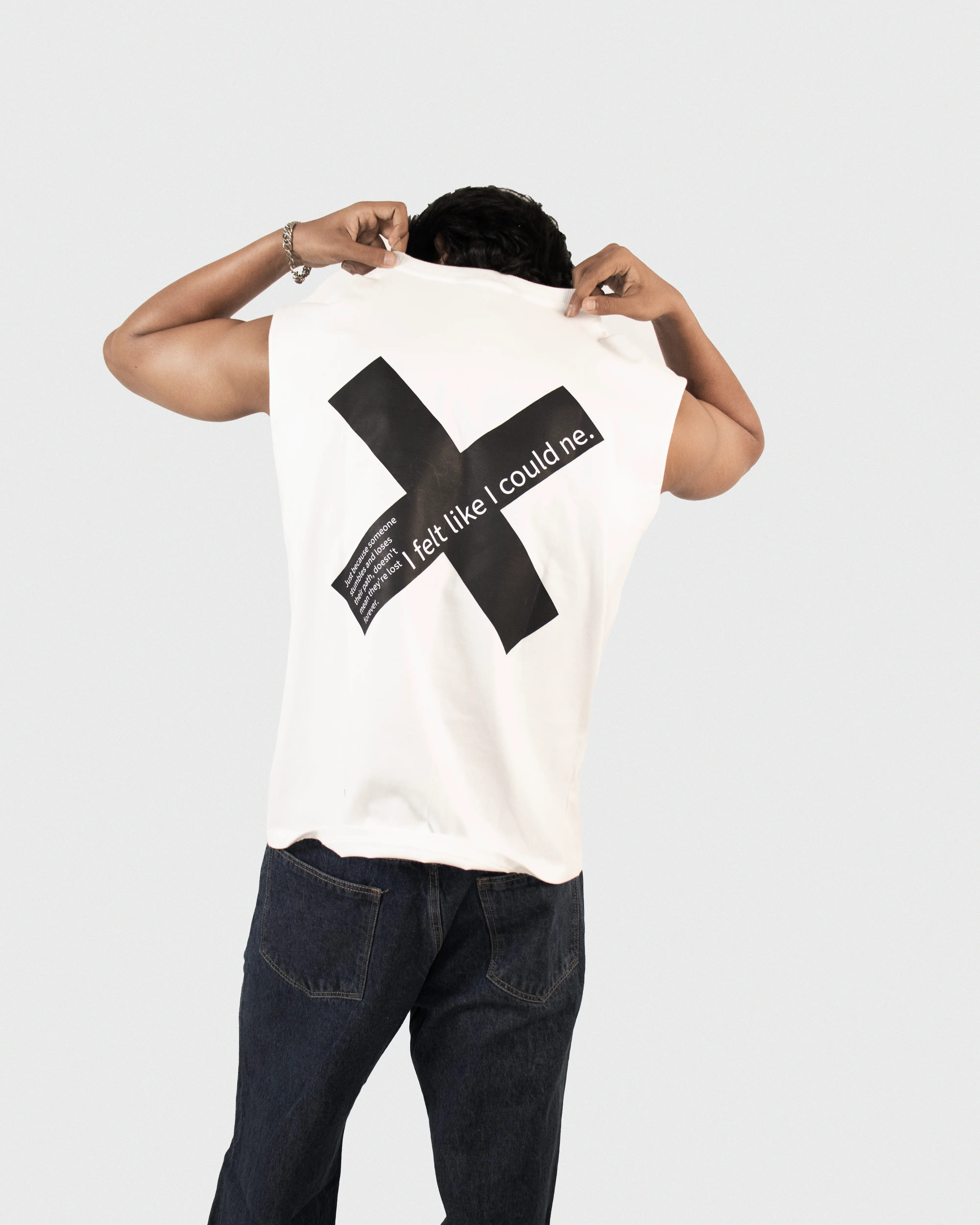 Vest top in heavyweight cotton jersey with a round, rib-trimmed neckline, deep armholes with raw edges, and a straight-cut hem. Loose fit for a generous but not oversized silhouette.