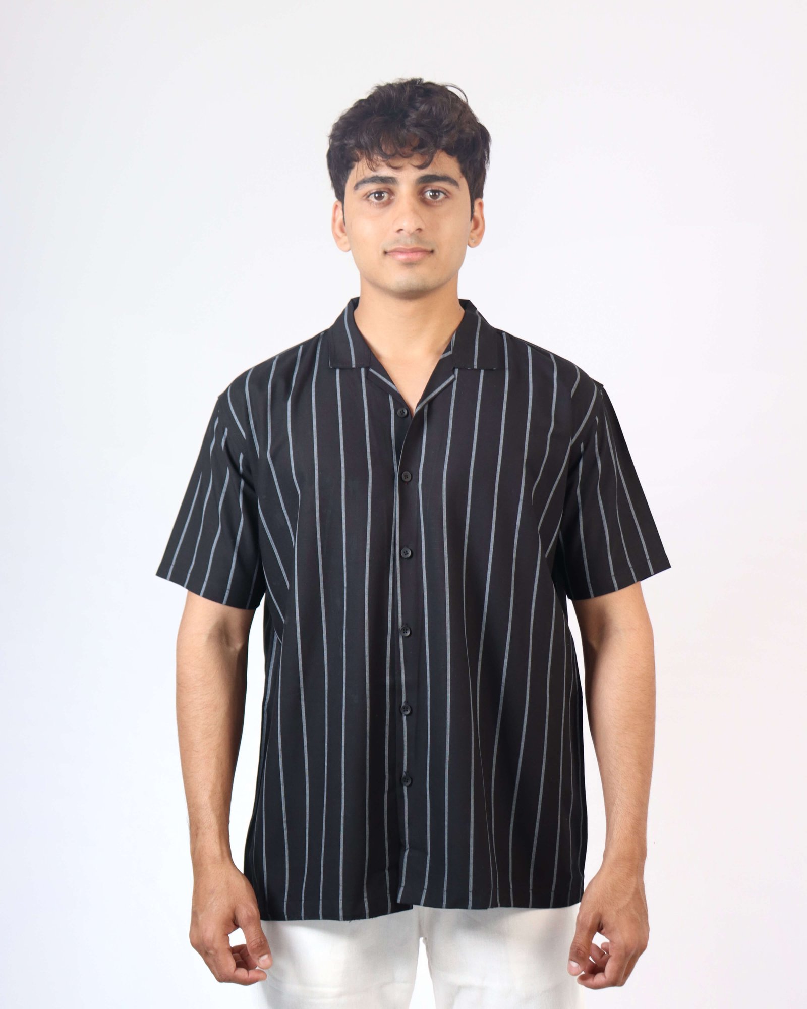 Oversized Shirt in cotton, ribdropped shoulders and short sleeves.